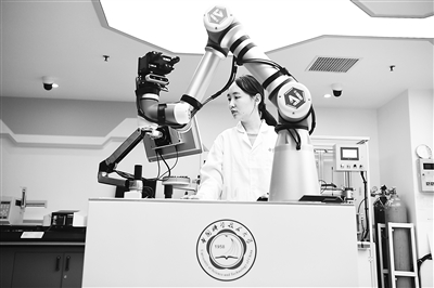 中國科學(xué)技術(shù)大學(xué)一名博士研究生在實驗室調(diào)試機器化學(xué)家系統(tǒng)“小來”。新華社記者 張端攝