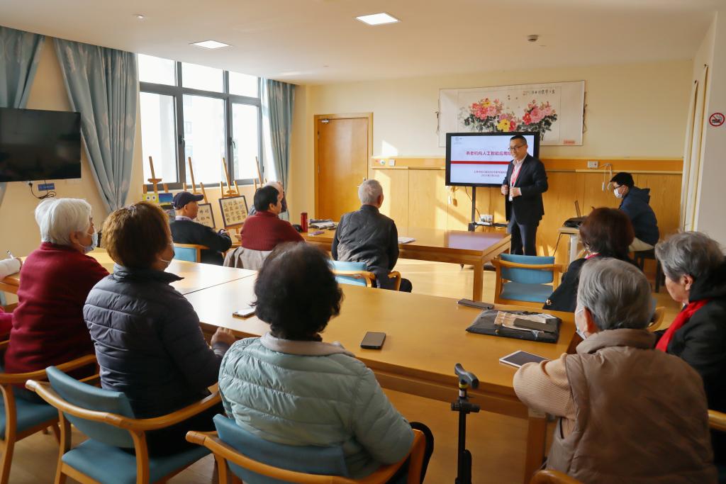 上海市虹口區(qū)彩虹灣老年福利院的活動室內正在舉辦學習AI使用方法的“小鯨魚課堂”(2月26日攝)。新華社記者 唐斯琦 攝