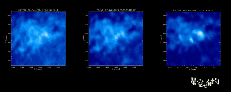 最近3個X級耀斑(22日X1.8級耀斑、22日X1.7級耀斑和23日X6.3級耀斑)發(fā)生時“夸父一號”太陽全日面成像儀拍攝到的影像。(“夸父一號”研究團(tuán)隊(duì)供圖)