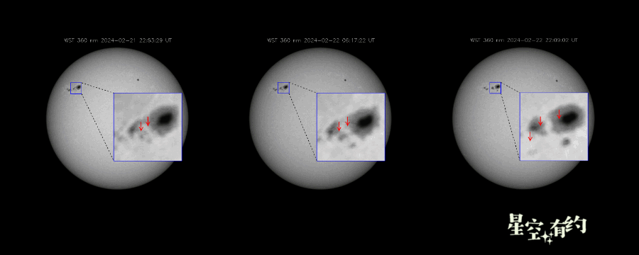 最近3個X級耀斑(22日X1.8級耀斑、22日X1.7級耀斑和23日X6.3級耀斑)發(fā)生時“夸父一號”白光望遠(yuǎn)鏡拍攝到的影像。(“夸父一號”研究團(tuán)隊(duì)供圖)