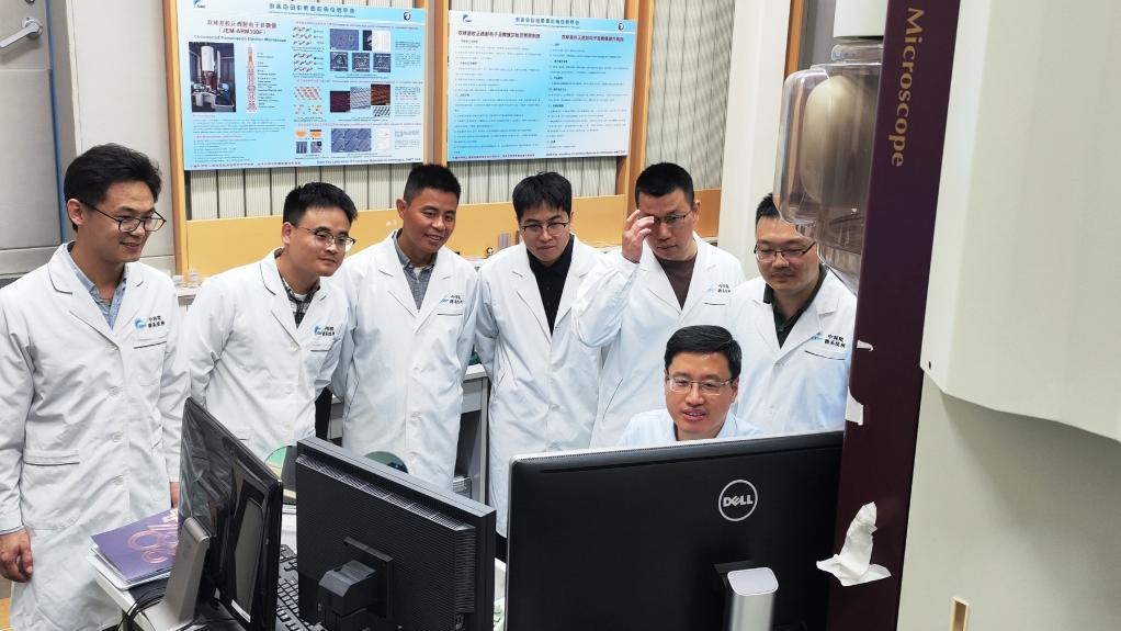 歐欣(前排右一)團隊在實驗室。新華社記者董雪 攝