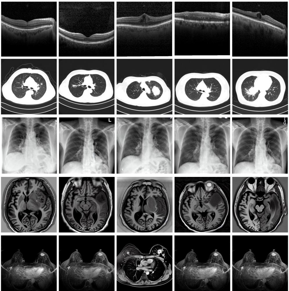 “目前公開(kāi)的醫(yī)學(xué)影像數(shù)據(jù)非常有限,我們建立的生成式模型有望解決訓(xùn)練數(shù)據(jù)不夠的問(wèn)題?!北本┐髮W(xué)未來(lái)技術(shù)學(xué)院助理研究員王勁卓說(shuō),研究團(tuán)隊(duì)利用多種器官在CT、X光、磁共振等不同成像方式下的高質(zhì)量影像文本配對(duì)數(shù)據(jù)進(jìn)行訓(xùn)練,最終生成海量的醫(yī)學(xué)合成影像,其在圖像特征、細(xì)節(jié)呈現(xiàn)等多方面都與真實(shí)醫(yī)學(xué)圖像高度一致。