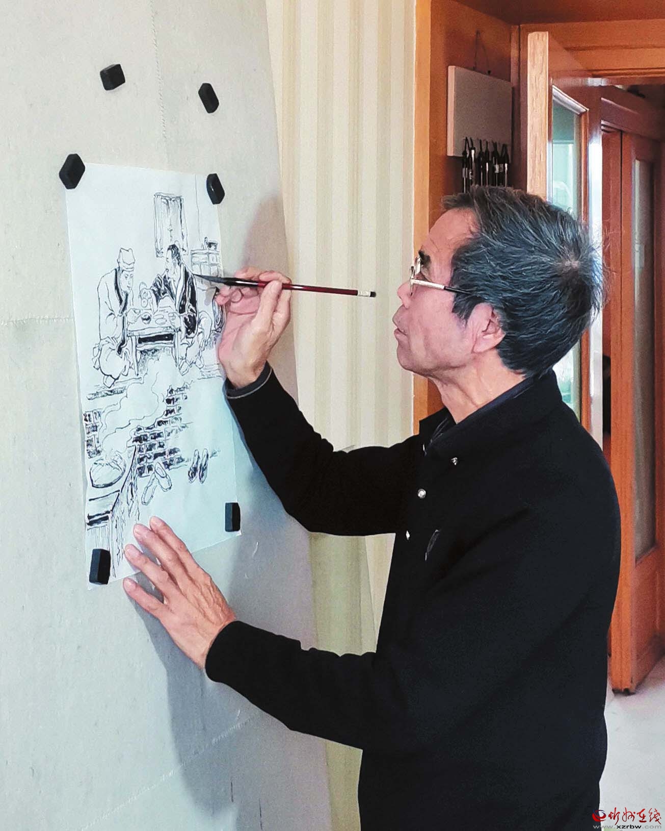 “夢(mèng)圓畫(huà)室”的主理人叫艾吉虎,正如他的視頻號(hào)名字一樣,繪畫(huà)是他人生的最大愛(ài)好和情感寄托。早些年,艾吉虎曾利用繪畫(huà)專(zhuān)長(zhǎng)從事過(guò)玻璃雕畫(huà),隨著玻璃雕畫(huà)在裝修行業(yè)的沒(méi)落,艾吉虎轉(zhuǎn)戰(zhàn)其他行業(yè),但兜兜轉(zhuǎn)轉(zhuǎn)離不開(kāi)他的繪畫(huà)愛(ài)好。在原平市民俗文化研究會(huì)當(dāng)美編期間,艾吉虎開(kāi)始嘗試“小人書(shū)”的繪畫(huà)創(chuàng)作,沒(méi)承想,幾個(gè)插圖畫(huà)出來(lái),得到許多人的熱烈追捧,這激發(fā)了他繼續(xù)創(chuàng)作的熱情。