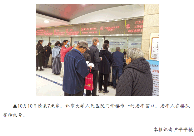 “趕緊地,再晚兩步,號(hào)兒就被人用手機(jī)搶光了!”10月10日早晨7點(diǎn),李玉蓉緊捯碎步,催促身后的老伴一起往北京大學(xué)人民醫(yī)院門診樓里沖。