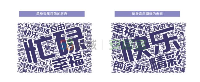 而對于未來,單身青年們最希望自己能“快樂”,追求“自由”“精彩”的人生,期望擁有“美滿”“幸?!钡摹扒巴尽?。(完)