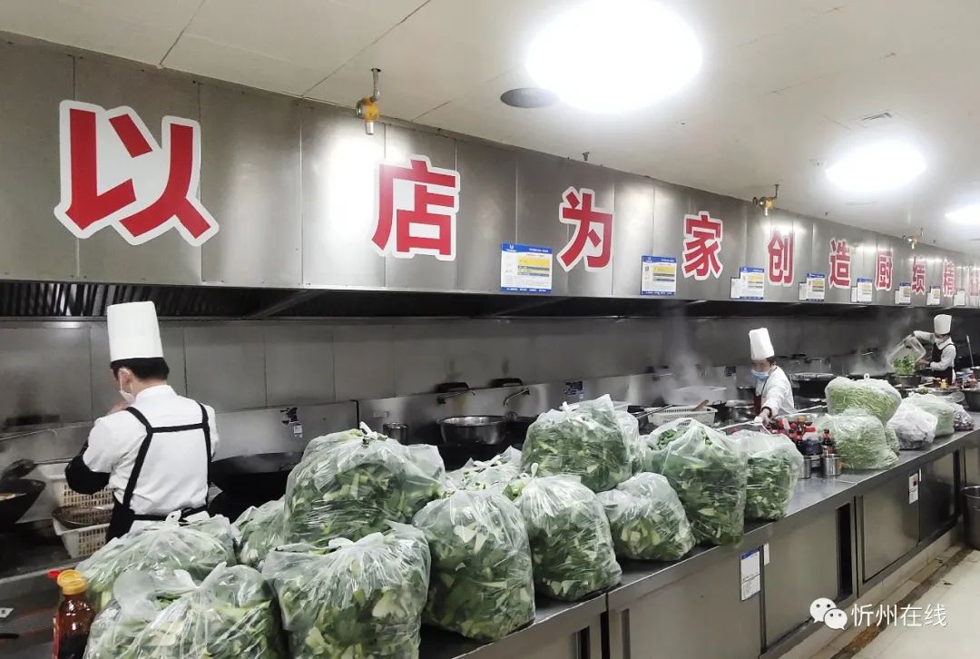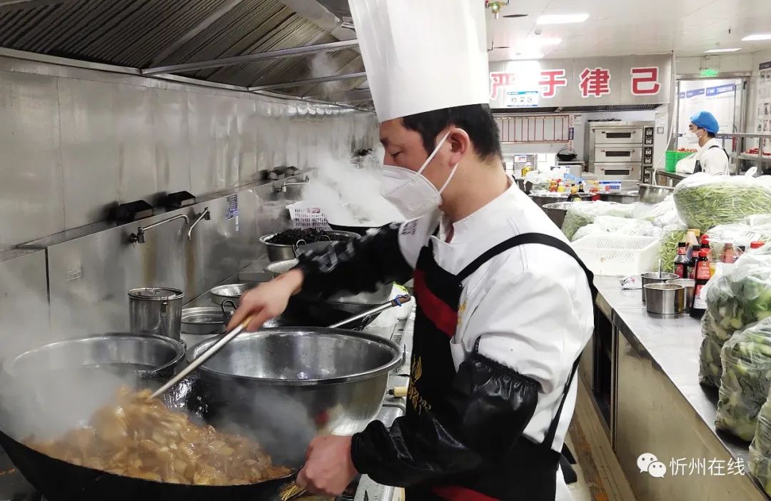 紅燒肉、過油肉、涼拌菜……12月2日下午,忻州丁方文化餐飲管理有限公司的廚師們正在有序忙碌著,一道道剛出鍋的飯菜被分餐員迅速分裝、打包、裝箱,他們要趕在18點之前送往忻州市級方艙醫(yī)院。