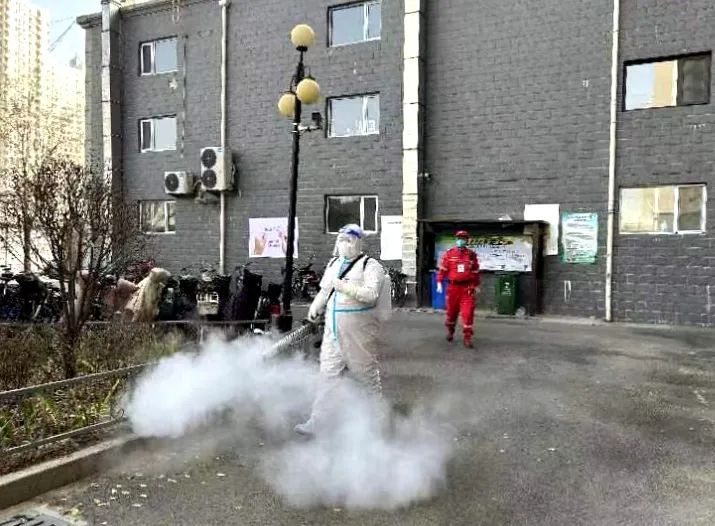 在消殺現(xiàn)場,志愿者們嚴(yán)格按照上級疫情防控的要求,分工明確,配合默契,穿上厚實(shí)密封的防護(hù)服,戴上N95口罩、手套和防護(hù)面罩,背著六七十斤的消殺噴霧器,第一時間穿梭在層層高樓、平房院落等生活區(qū)公共區(qū)域進(jìn)行消殺,確保每個角落、每個區(qū)域不留死角、不留盲區(qū)。