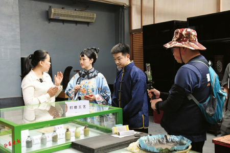 4.本報直播團隊在唐都推光漆藝文化產(chǎn)業(yè)創(chuàng)意園直播。