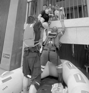 這是白龍華第一次參加洪澇災(zāi)害的救援,她被隊(duì)員們的勁頭感動(dòng)?!八虑闆r復(fù)雜,不可控的因素太多,各種雜物堆積,橡皮艇被淹沒(méi)在水中的彩鋼板劃破,但無(wú)論遇到什么情況,隊(duì)員們都沖鋒在前,安全轉(zhuǎn)移受困者?!卑埲A說(shuō)。