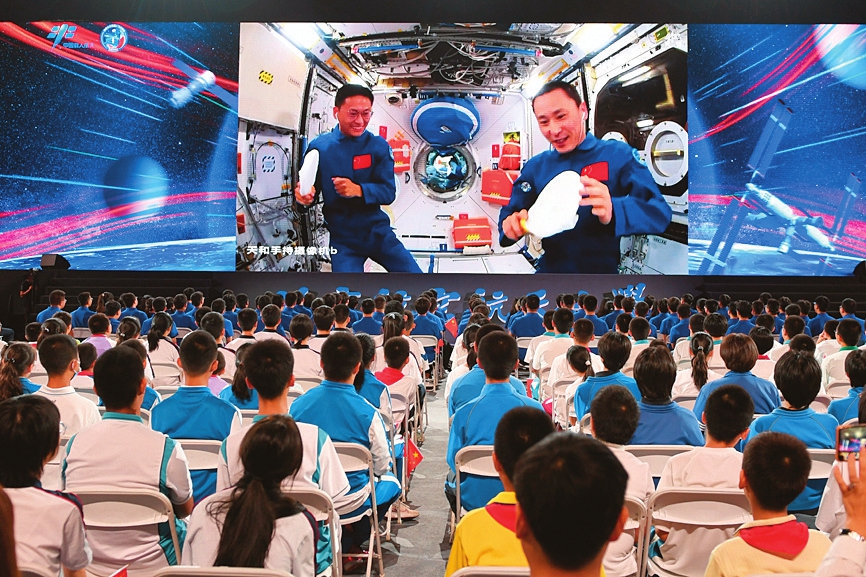 9月21日下午,“天宮課堂”第四課在中國空間站開講,新晉“太空教師”景海鵬、朱楊柱、桂海潮為廣大青少年帶來一場(chǎng)精彩的太空科普課,這是中國航天員首次在夢(mèng)天實(shí)驗(yàn)艙內(nèi)進(jìn)行授課。