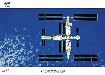神舟十六號乘組返回地面前手持高清相機,通過飛船繞飛拍攝的空間站組合體全景照片在見面會上首次發(fā)布。這是我國首次在軌獲取以地球為背景的空間站組合體全貌圖像,也是中國空間站的第一組全構(gòu)型工作照。