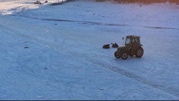 拖拉機拉著雪圈起舞旋轉(zhuǎn)