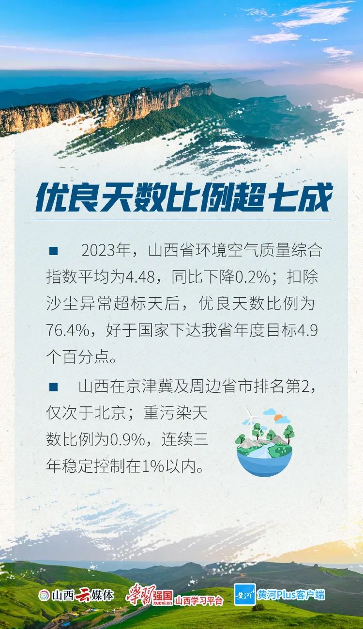 1月29日,山西省生態(tài)環(huán)境廳召開新聞通氣會。會議介紹,2023年,全省生態(tài)環(huán)境質(zhì)量明顯改善,國家下達的約束性指標任務全部完成。山西省連續(xù)兩年在黨中央國務院污染防治攻堅戰(zhàn)成效考核中評為優(yōu)秀。一組數(shù)字,讀懂2023年山西省生態(tài)環(huán)境“成績單”。