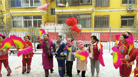 隨著喜慶熱鬧的音樂響起,活動(dòng)正式開始。舞蹈《豬八戒背媳婦》《燈籠舞》《扇子舞》等精彩的節(jié)目在居民面前輪番上演,博得了現(xiàn)場觀眾熱烈的掌聲。