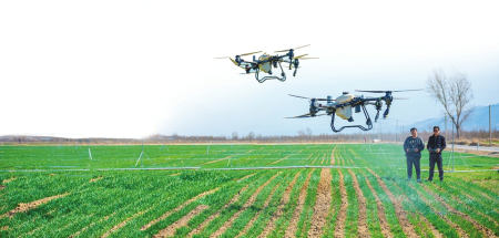 走進(jìn)鹽湖區(qū)姚孟街道陶上村的小麥田,今年的備耕工作已經(jīng)開(kāi)始,植保無(wú)人機(jī)操作手在鹽湖區(qū)現(xiàn)代農(nóng)業(yè)發(fā)展中心工作人員的指導(dǎo)下,按照管護(hù)要求進(jìn)行除草劑調(diào)配,并開(kāi)展除草作業(yè)。隨著螺旋槳的一陣嗡鳴,兩架無(wú)人機(jī)迅速升空,一團(tuán)白色霧雨隨即噴出,無(wú)人機(jī)向前推進(jìn),田里的麥苗隨氣浪搖曳,盡情享受著“藥浴”,半小時(shí)不到,20余畝麥田便完成了除草作業(yè)。