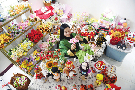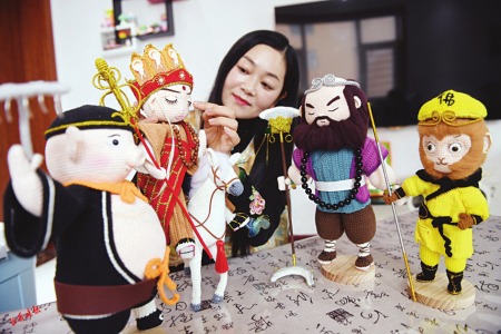“這個鉤編悟空高30厘米,用時二十多天,是我一針一針鉤出來的?!?0月17日,太原市杏花嶺區(qū)褚晶晶家里擺滿了她創(chuàng)作的各種鉤編作品,其中根據(jù)《黑神話:悟空》創(chuàng)作的鉤編作品悟空形態(tài)逼真,惟妙惟肖。 褚晶晶是太原市杏花嶺區(qū)非遺鉤編技藝代表性傳承人,從事鉤編技藝十余年。她不僅熱衷于創(chuàng)作各種精美的鉤織手工作品,還致力于非遺文化的推廣與傳播?!斑@一組唐僧師徒是根據(jù)《西游記》師徒四人形象創(chuàng)作的,從構(gòu)思到畫圖再到完工,每一個細節(jié)都要很用心。”褚晶晶介紹。 褚晶晶的作品色彩豐富、形態(tài)多樣,既保留了傳統(tǒng)鉤編藝術(shù)的精髓,又融入現(xiàn)代審美元素,形成了鮮明的個人風格。多年來,她不斷精進技藝,探索創(chuàng)新,將鉤編技藝發(fā)揮得淋漓盡致。 說到鉤編作品悟空的創(chuàng)作,褚晶晶表示,熱門游戲《黑神話:悟空》帶火了山西,作為一名非遺傳承人,她有責任通過自己的作品,展示和推廣山西的優(yōu)秀傳統(tǒng)文化。 山西晚報記者 武六紅 通訊員 郝晨光攝影報道 1.褚晶晶沉浸在編織創(chuàng)作中。 2.客廳成了褚晶晶作品展示區(qū)。 3.褚晶晶鉤編的唐僧師徒作為非遺展覽,很受歡迎。 4.褚晶晶的新作“悟空”。 (責任編輯:梁艷) |