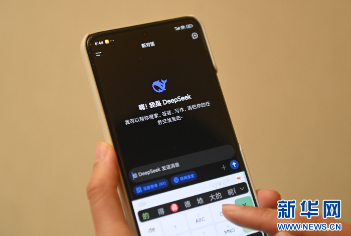 用戶在DeepSeek手機(jī)客戶端上提問(wèn)。新華社記者 黃宗治 攝