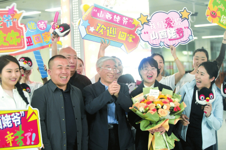 在接站口,“姥爺”接過記者遞上的鮮花,看到刊載報道他的4月2日的報紙,咧嘴一笑,一再說“謝謝,謝謝”,記者用鏡頭和文字記錄下這份喜悅。交城縣委宣傳部也派出了接機(jī)小分隊(duì),打著“我們愛你,山西姥爺”等歡迎牌,把姥爺護(hù)送回家。