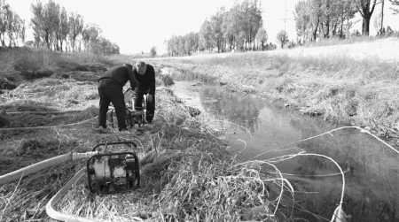 3.在高平市寺莊鎮(zhèn)市望村河道邊,兩臺抽水機馬力全開,河水化作“及時雨”涌入麥田。
