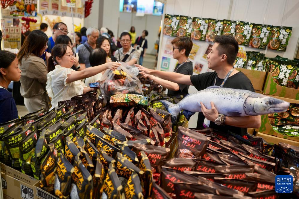8月14日,觀眾在第35屆美食博覽上選購(gòu)商品。新華社發(fā)(呂小煒 攝)