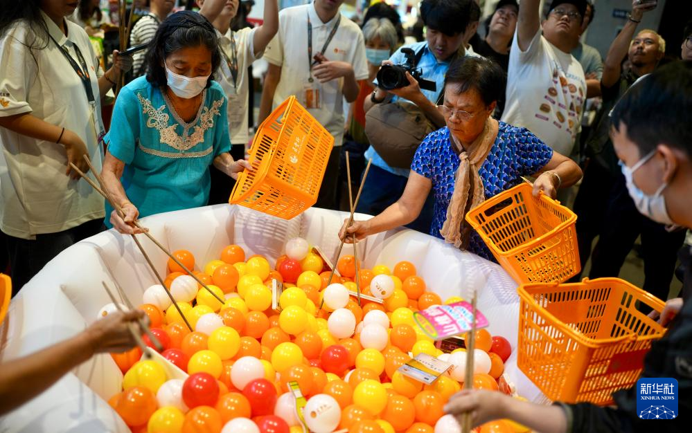 8月14日,觀眾在第35屆美食博覽上參加互動(dòng)游戲。新華社發(fā)(呂小煒 攝)