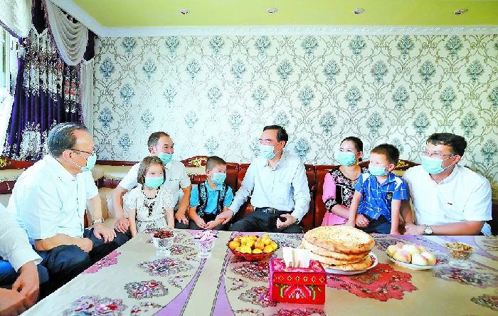 陳全國(guó)在調(diào)研中強(qiáng)調(diào),要增強(qiáng)“四個(gè)意識(shí)”、堅(jiān)定“四個(gè)自信”、做到“兩個(gè)維護(hù)”,堅(jiān)決貫徹落實(shí)以習(xí)近平同志為核心的黨中央決策部署,緊扣全面建成小康社會(huì)目標(biāo)任務(wù),堅(jiān)持穩(wěn)中求進(jìn)工作總基調(diào),堅(jiān)決打好三大攻堅(jiān)戰(zhàn),扎實(shí)做好“六穩(wěn)”工作,全面落實(shí)“六?!比蝿?wù),確保完成決戰(zhàn)決勝脫貧攻堅(jiān)目標(biāo)任務(wù),與全國(guó)一道全面建成小康社會(huì)。要抓好常態(tài)化疫情防控,堅(jiān)持和完善“外防輸入、內(nèi)防反彈”各項(xiàng)措施,強(qiáng)化重點(diǎn)部位、重點(diǎn)人群、重點(diǎn)關(guān)口精準(zhǔn)防控,扎實(shí)開展愛國(guó)衛(wèi)生運(yùn)動(dòng),引導(dǎo)各族群眾科學(xué)防護(hù),鞏固防控成果。要堅(jiān)決打贏脫貧攻堅(jiān)戰(zhàn),緊扣“兩不愁三保障”,落實(shí)“六個(gè)精準(zhǔn)”,扎實(shí)推進(jìn)“七個(gè)一批”“三個(gè)加大力度”,強(qiáng)化掛牌督戰(zhàn)、問題整改、返貧監(jiān)測(cè)、動(dòng)態(tài)幫扶,突出發(fā)展產(chǎn)業(yè)帶動(dòng)就業(yè),持續(xù)鞏固提升脫貧成果,集中力量攻克最后堡壘。要推動(dòng)經(jīng)濟(jì)高質(zhì)量發(fā)展,貫徹新發(fā)展理念,加快轉(zhuǎn)變發(fā)展方式,著力擴(kuò)投資、促消費(fèi)、穩(wěn)外貿(mào),培育壯大特色優(yōu)勢(shì)產(chǎn)業(yè),加快絲綢之路經(jīng)濟(jì)帶核心區(qū)建設(shè),持續(xù)優(yōu)化營(yíng)商環(huán)境,激發(fā)市場(chǎng)主體活力,切實(shí)把發(fā)展成果落實(shí)到改善民生、凝聚人心上。要保持社會(huì)大局和諧穩(wěn)定,聚焦總目標(biāo)、打好組合拳,堅(jiān)持行之有效的維穩(wěn)措施不動(dòng)搖,最大限度團(tuán)結(jié)和凝聚人心,為常態(tài)化疫情防控和經(jīng)濟(jì)社會(huì)發(fā)展?fàn)I造良好環(huán)境。