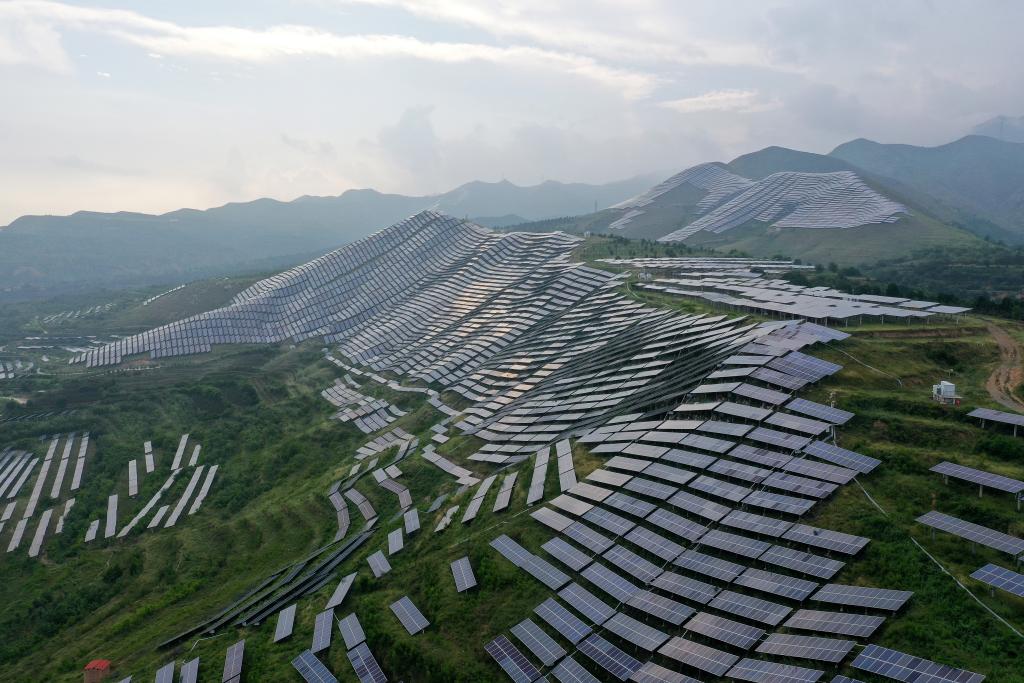 7月12日,山西省芮城縣學(xué)張鄉(xiāng)光伏電站(無(wú)人機(jī)照片)。新華社記者 詹彥 攝