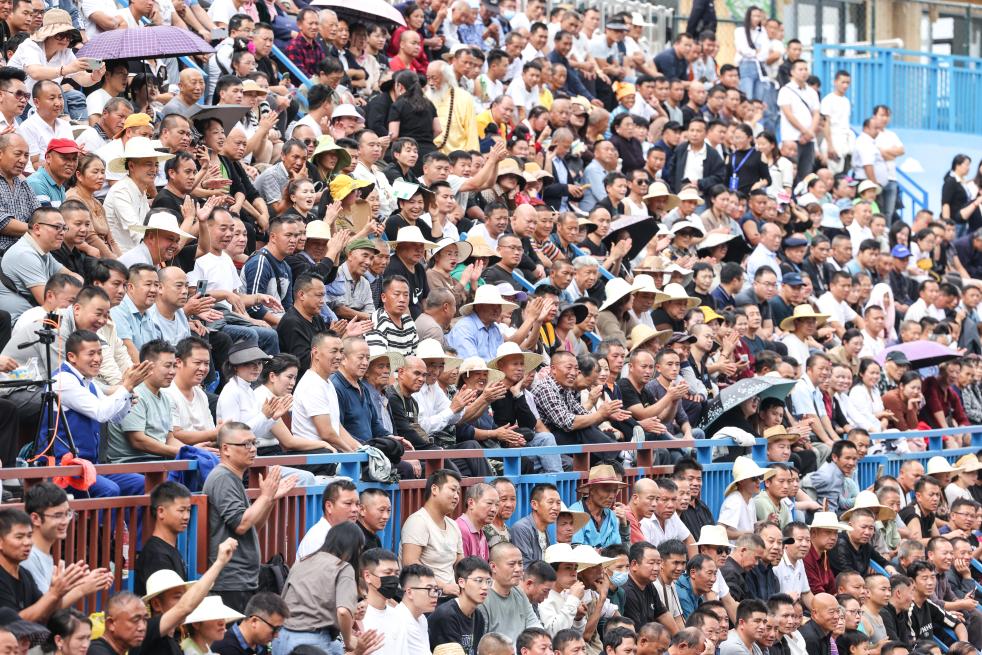 10月25日,全國(guó)和美鄉(xiāng)村籃球大賽(村BA)總決賽在貴州省臺(tái)江縣臺(tái)盤(pán)村開(kāi)賽,觀眾在看臺(tái)上觀看比賽。新華社記者 歐東衢 攝