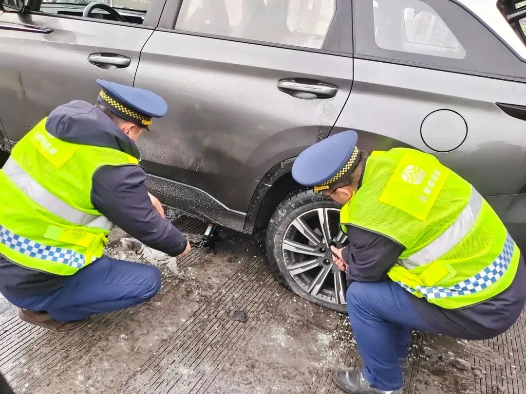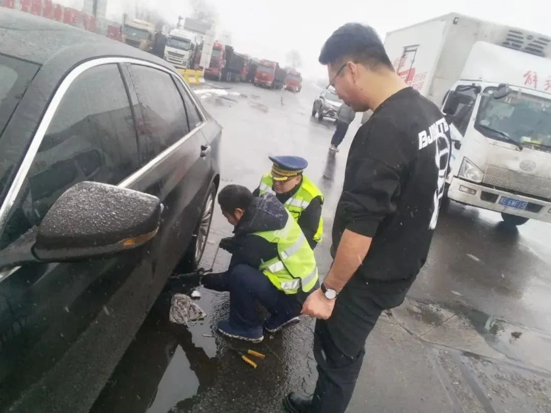 在汾陽西收費(fèi)站附近,一私家車主想要拆卸下防滑鏈,但不會(huì)操作,熱心的高速收費(fèi)員從站內(nèi)拿來拆卸工具,和治超員一起,幫車主拆卸下防滑鏈。