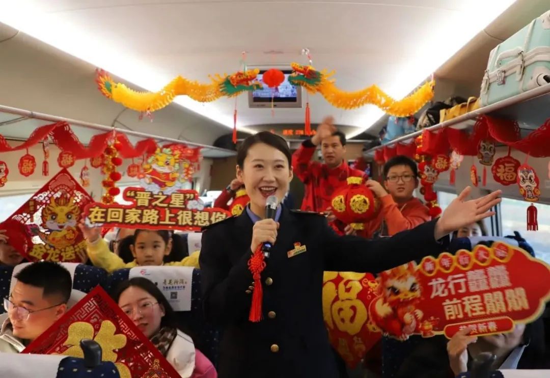 春運(yùn)首日,太原客運(yùn)段各次列車圍繞“龍行龘龘 旅程暖暖”主題,開展了精彩紛呈、喜慶熱鬧的列車文化活動(dòng)?;丶衣飞?,我們不孤單。