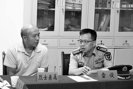 1.長治軍分區(qū)政治委員雷俊與烈士家屬交談。 長治軍分區(qū)原益峰供圖