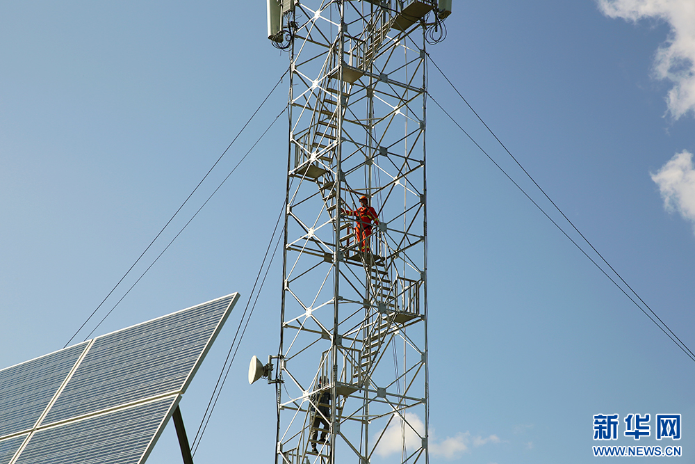李穎在攀爬瞭望塔(拍攝于8月12日)。新華網(wǎng)石毅 攝
