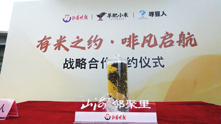 當(dāng)羊肥小米董事長杜紅雁與云南尋豆人董事長郭濤走到桌前,各自拿起桌上的玻璃罐,將里邊盛放的小米、咖啡豆,最終匯入一個大的玻璃罐,咖啡豆小米相互融合在一起,標(biāo)志著一場跨越山海的“雙向奔赴”正式拉開序幕。杜紅雁手中的小米,是羊肥小米園區(qū)精心培育的成果,每一粒都承載著對土地的敬畏與堅(jiān)守;郭總手中的咖啡豆,是尋豆人團(tuán)隊(duì)心血的結(jié)晶,每一顆都凝聚著對品質(zhì)的追求。