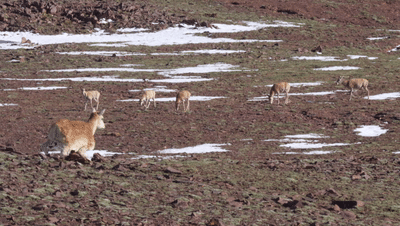 新華社北京8月11日電 可可西里卓乃湖畔,一夜大雪過后,湖面更加湛藍(lán),空氣冰冷而清新,低處草地上的雪已融化,稍高一點(diǎn)的山崗上,還覆蓋著厚厚的積雪。 下午三點(diǎn)鐘,高原的太陽開始有點(diǎn)暖意,正是藏羚羊覓食的高峰。餓了一夜的藏羚羊,這邊一群,那邊一群,像芝麻一般,撒滿了卓乃湖畔的坡梁山崗。 突然,離記者最近的一群藏羚羊旁邊,出現(xiàn)了一只步履稍顯僵硬的“藏羚羊”,腳步?jīng)]有那么輕盈,體型也更豐滿一些。不像其它藏羚羊一邊啃草一邊走動(dòng),這只“藏羚羊”一直昂著頭,“小心翼翼”卻又堅(jiān)定執(zhí)著地一點(diǎn)點(diǎn)靠近藏羚羊群。