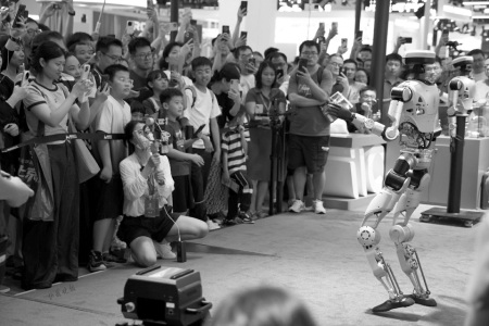 觀眾走進(jìn)展會(huì),仿佛來到未來世界:無論是在人群中來回穿梭的機(jī)器人、機(jī)器狗“宣傳小隊(duì)”,還是在各種模擬場(chǎng)景中展示獨(dú)特能力的人形機(jī)器人,或者是靈巧的機(jī)械手、機(jī)械臂,都充滿了科幻色彩。那些曾經(jīng)只存在于科幻電影的場(chǎng)景,在本屆大會(huì)集體“破圈”。