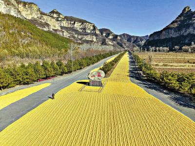 山西晚報(bào)·山河+訊(記者 溫麗芳)近日,在陽(yáng)泉盂縣藏山景區(qū),一條由金黃玉米鋪就的“黃金大道”,在青山、藍(lán)天的映襯下,構(gòu)成一道別樣的冬日風(fēng)景。據(jù)了解,藏山景區(qū)主動(dòng)騰退千米道路,為周邊農(nóng)戶提供免費(fèi)晾曬場(chǎng)地,讓豐收的玉米與巍峨的太行山水相映成畫,繪就了一幅農(nóng)旅共融的生動(dòng)圖景。