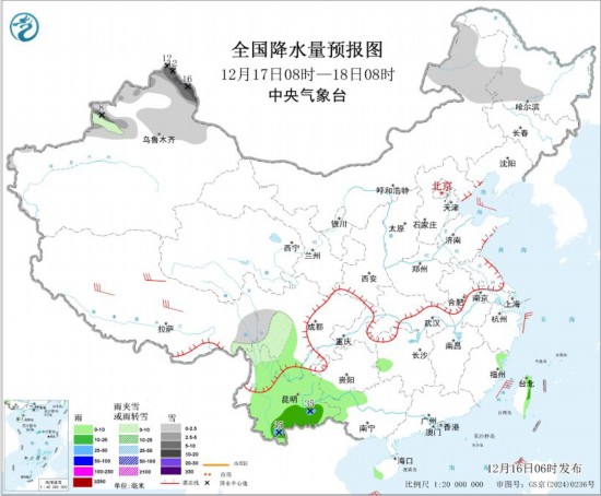 全國降水量預報圖(12月17日08時-18日08時)