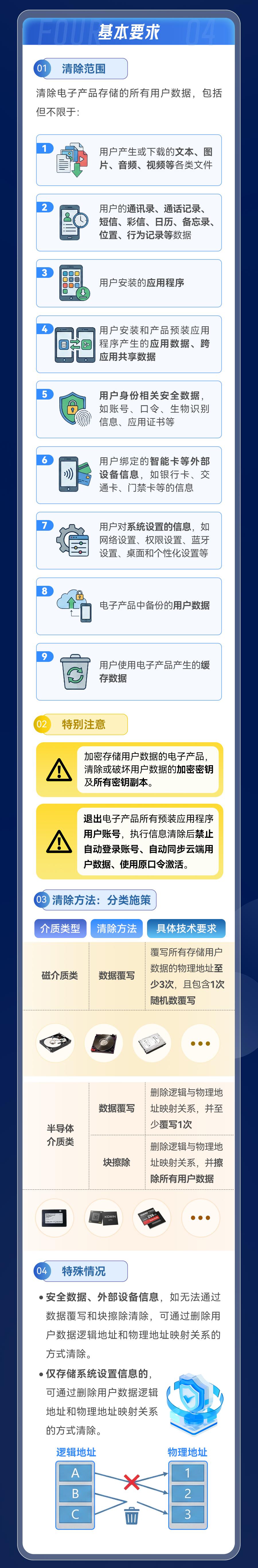 這項強(qiáng)制性國家標(biāo)準(zhǔn)的適用范圍涵蓋了在我國境內(nèi)生產(chǎn)、銷售的各類具有非易失性存儲介質(zhì)的電子產(chǎn)品,包括手機(jī)、平板電腦、筆記本電腦、臺式計算機(jī),以及智能穿戴設(shè)備、辦公設(shè)備等。其約束對象既包括電子產(chǎn)品制造商、技術(shù)服務(wù)提供方,也包括二手電子產(chǎn)品回收經(jīng)營者。