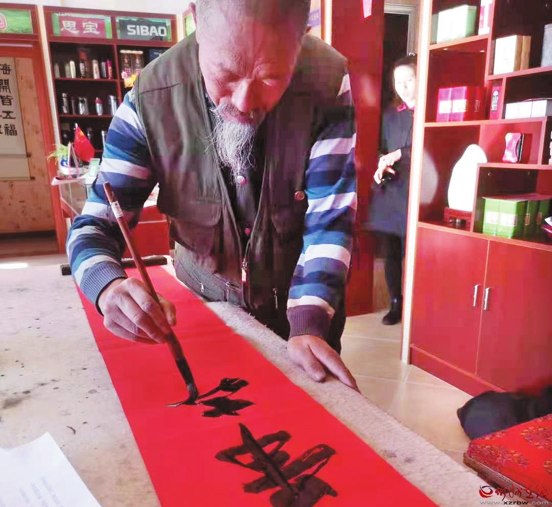 春節(jié)臨近,神池縣書法家協(xié)會(huì)組織該縣書法愛好者深入鄉(xiāng)村、企業(yè),為群眾義務(wù)書寫、免費(fèi)贈(zèng)送春聯(lián),送上新春的祝福。( 楊晉明 攝)