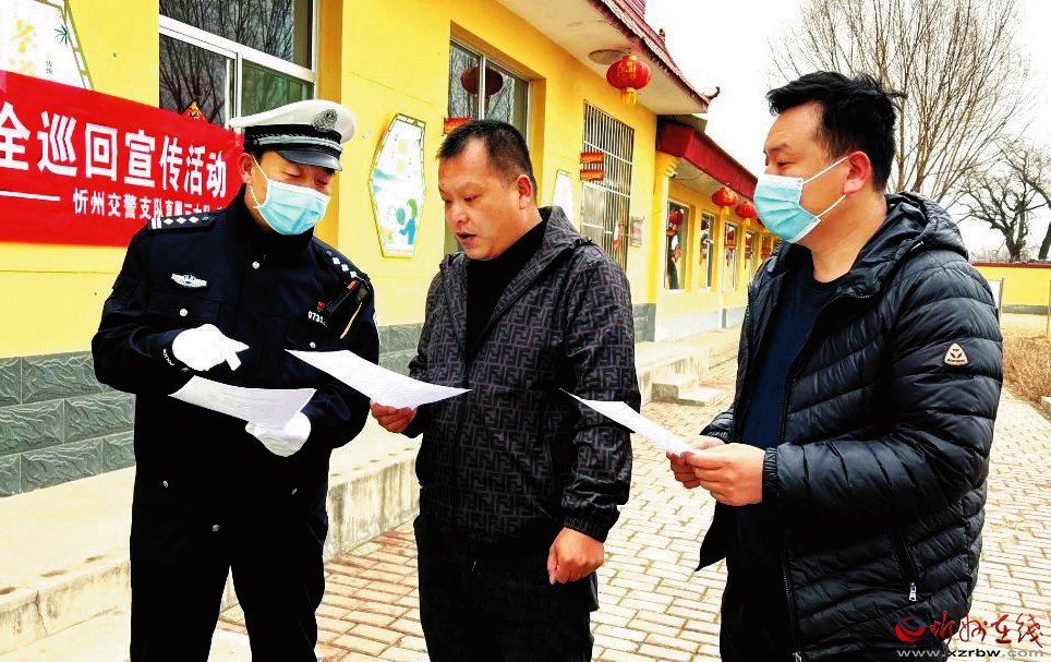 為進(jìn)一步增強(qiáng)農(nóng)民群眾交通安全意識(shí)和文明出行意識(shí),預(yù)防和減少道路交通事故的發(fā)生,近日,市公安局交警支隊(duì)直屬三大隊(duì)的民警輔警走進(jìn)忻府區(qū)樊野村、逯家莊、東社村等地,開(kāi)展“美麗鄉(xiāng)村行”交通安全宣傳活動(dòng)。