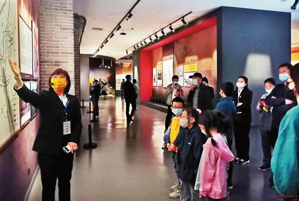 5月15日,參觀者在忻州市博物館“鐵血英魂”展廳聽講解員介紹。2022年“國際博物館日”來臨之際,忻州市博物館將圍繞“博物館的力量”這一主題,進行一系列學(xué)術(shù)講堂、觀眾互動和非物質(zhì)文化遺產(chǎn)推介等特色活動。(宮清華 攝)