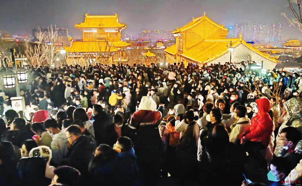 夜幕下,一場(chǎng)絢麗璀璨的打鐵花盛宴在忻州古城城墻精彩上演。假日期間,古城景區(qū)內(nèi)張燈結(jié)彩、熱鬧非凡,不少游客前來(lái)品嘗地道的晉北特色美食,新入駐的小攤集市為古城景區(qū)增添了煙火氣。城內(nèi)設(shè)置多處主題燈展,“年年有余”“兔年大吉”“祥龍迎春”等寓意美好的花燈和周邊環(huán)境融為一體,使游客在感受傳統(tǒng)民間文化的同時(shí),豐富了旅游體驗(yàn)。