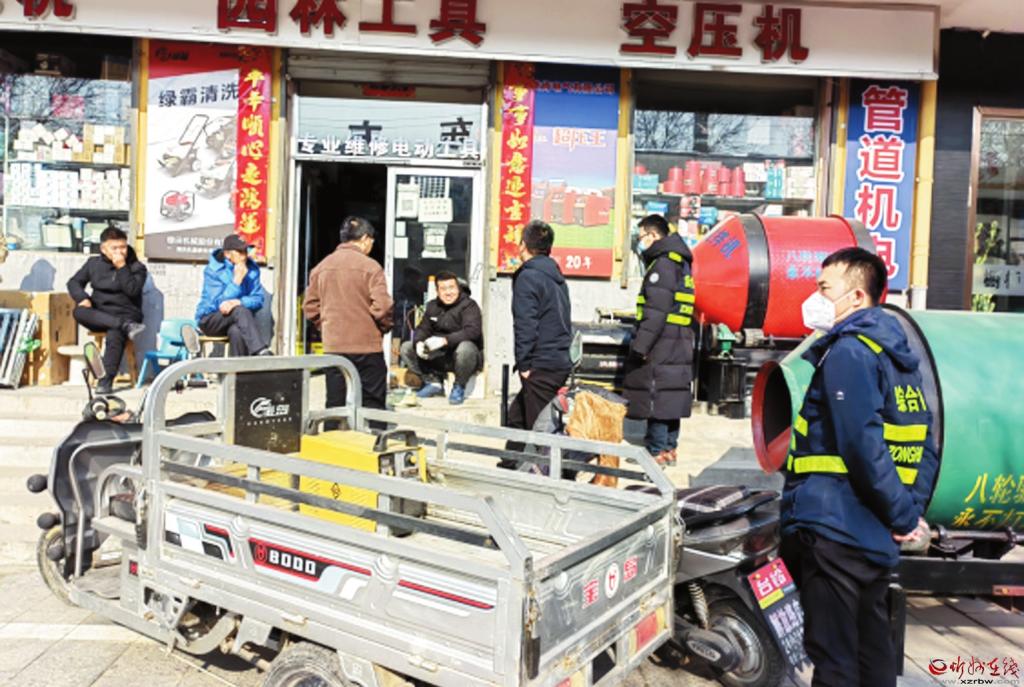 近日,市生態(tài)環(huán)境局定襄分局執(zhí)法隊(duì)在責(zé)任片區(qū)開(kāi)展市容市貌專項(xiàng)整治工作。執(zhí)法人員對(duì)違規(guī)商戶進(jìn)行勸導(dǎo),引導(dǎo)他們自覺(jué)糾正占道經(jīng)營(yíng)行為。 (照片來(lái)源:市生態(tài)環(huán)境局官網(wǎng))