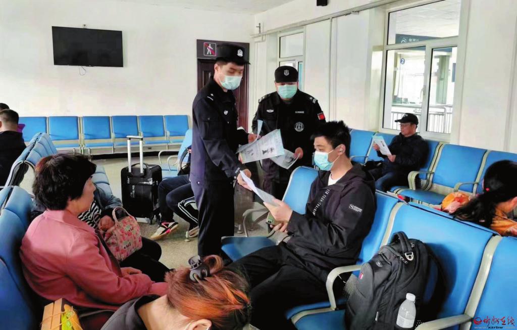 為保護(hù)旅客財(cái)產(chǎn)安全,五寨火車站派出所民警采取多種方式對(duì)旅客開展普法教育和反電信詐騙宣傳,受到旅客好評(píng)。圖為民警在候車室向旅客發(fā)放宣傳資料。 (索效光 攝)
