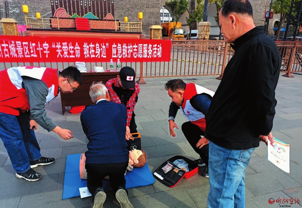 為進(jìn)一步提高景區(qū)從業(yè)人員和游客的安全意識,增強(qiáng)應(yīng)對突發(fā)狀況的能力,近日,忻州市紅十字會的志愿者們走進(jìn)忻州古城景區(qū)開展應(yīng)急救援培訓(xùn)活動(dòng)。