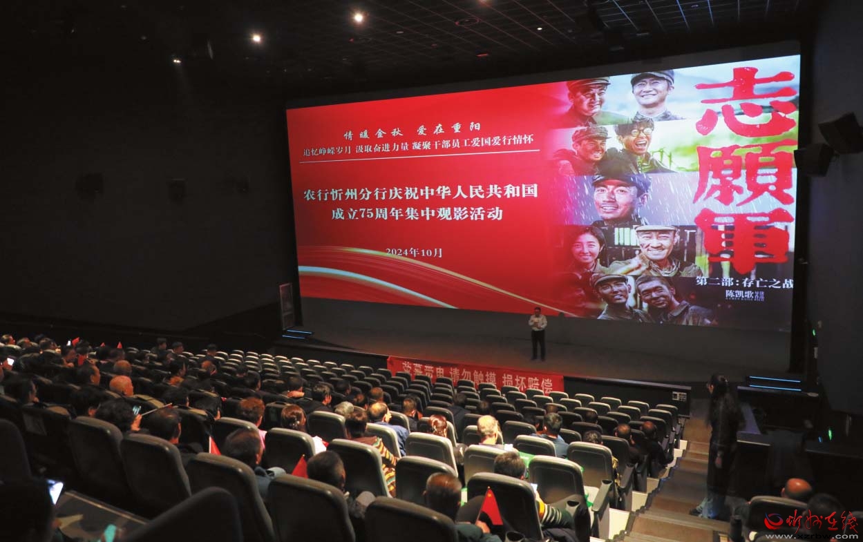 近日,農(nóng)行忻州分行組織機(jī)關(guān)員工和離退休職工共同觀看《志愿軍:存亡之戰(zhàn)》紅色電影。此次觀影活動(dòng),旨在追憶崢嶸歲月,汲取奮進(jìn)力量,凝聚愛國(guó)愛行情懷,激發(fā)員工奮斗精神,增強(qiáng)戰(zhàn)勝困難的信心和決心,以推動(dòng)全行高質(zhì)量發(fā)展。 (殷俊攝)