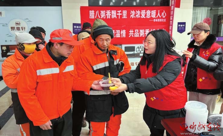 俗話說(shuō)“過(guò)了臘八就是年”,年味就是從一碗熱氣騰騰的臘八粥開(kāi)始的。寒冬臘月,忻府區(qū)杏林西街社區(qū)攜手愛(ài)心企業(yè)寒冬送溫情,為奮戰(zhàn)在一線的環(huán)衛(wèi)工人熬制了熱氣騰騰的紅豆粥。