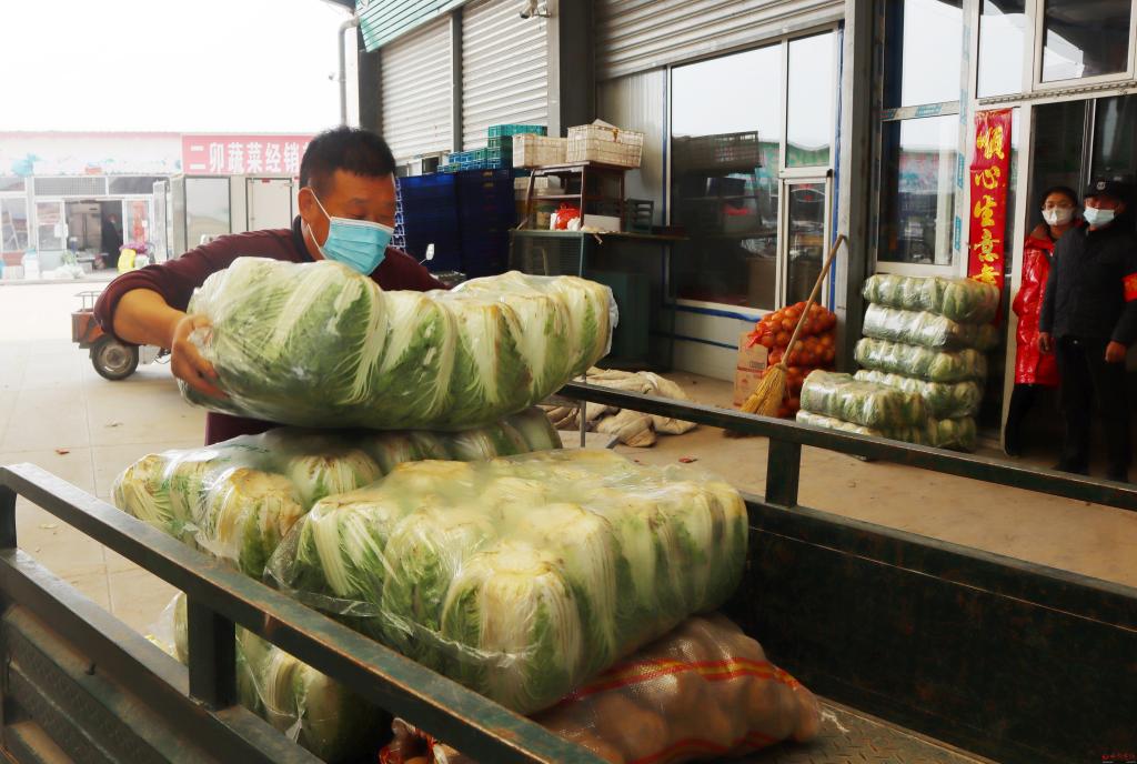 當(dāng)日上午10時(shí),記者在忻府區(qū)華瑞農(nóng)副產(chǎn)品批發(fā)市場(chǎng)看到,商戶們正在有條不紊地裝貨卸貨,白菜、豆角、茴子白、蘋果等群眾日常所需的蔬菜和水果供應(yīng)充足。