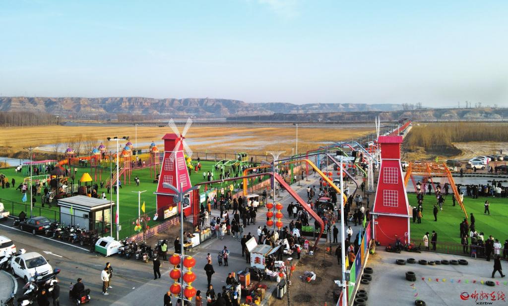 沿著唐家會村整潔的道路往前走,首先看到的是大型親子游樂園。游樂園項目總投資380萬元,占地31.8畝,共有無動力兒童樂園、動力游樂園、水上樂園、滑世界4大板塊,現(xiàn)有無動力設(shè)備35種、動力設(shè)備9種。日??土髁棵刻旒s200人至300人,日均收入6000元左右。每到周末或節(jié)假日,客流量逾千人。從2022年10月試運(yùn)行到2023年9月累計收益150萬元。游樂園建成投運(yùn)后,不僅改善了本村的生態(tài)環(huán)境,也填補(bǔ)了河曲縣城游樂園短缺這一空白,為河曲縣居民提供了一個體育健身、文化交流、休閑娛樂的室外活動場所,也為河曲縣郊區(qū)文化環(huán)境、生態(tài)環(huán)境的改善發(fā)揮了重要作用。