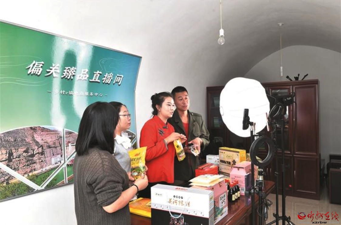 偏關(guān)鄉(xiāng)村e鎮(zhèn)公共服務(wù)中心直播帶貨現(xiàn)場。本報(bào)記者 馮曉磊攝